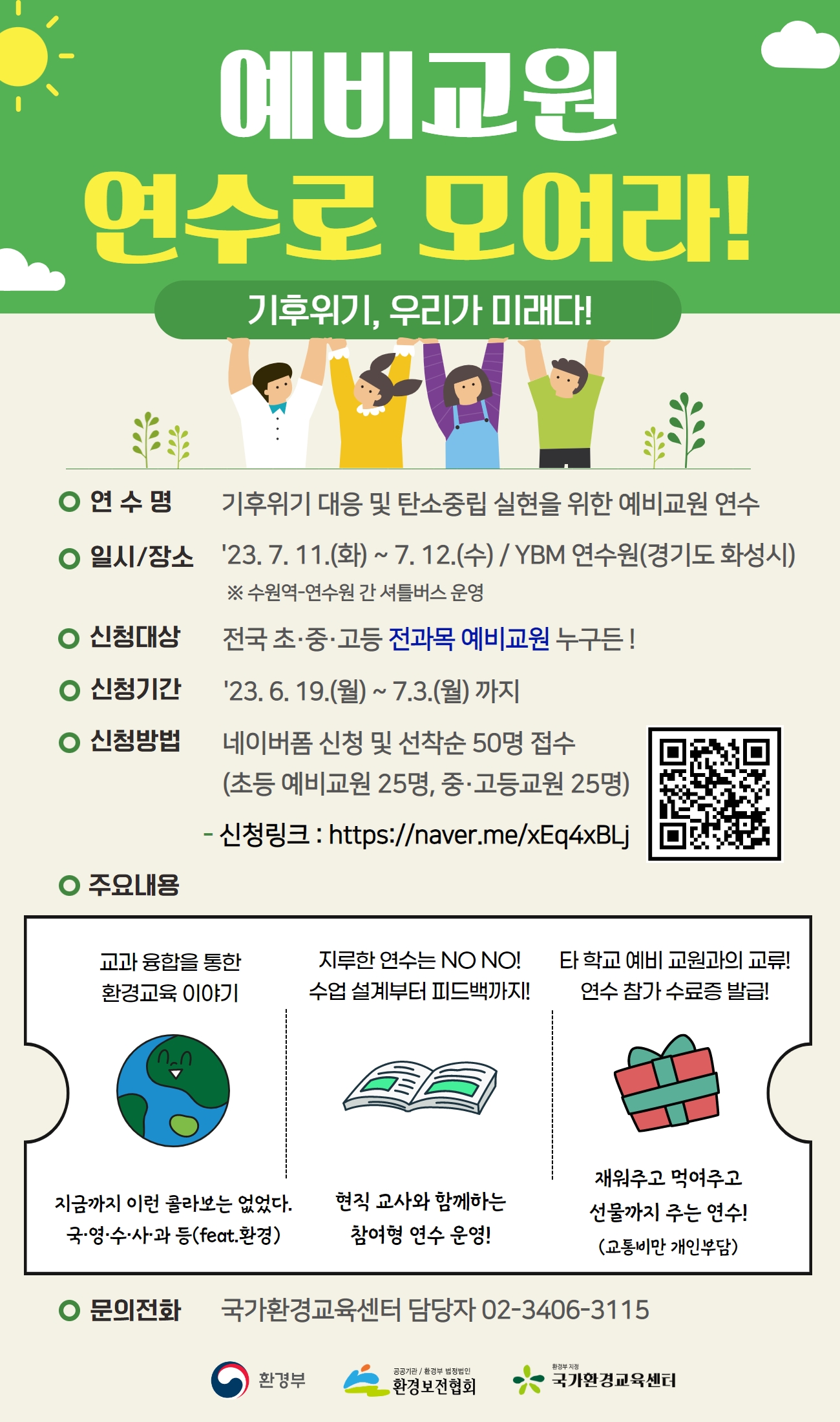 - [학교현장실습] [기타] 기후위기 대응 및 탄소중립 실현을 위한 예비교원 연수 공고 안내