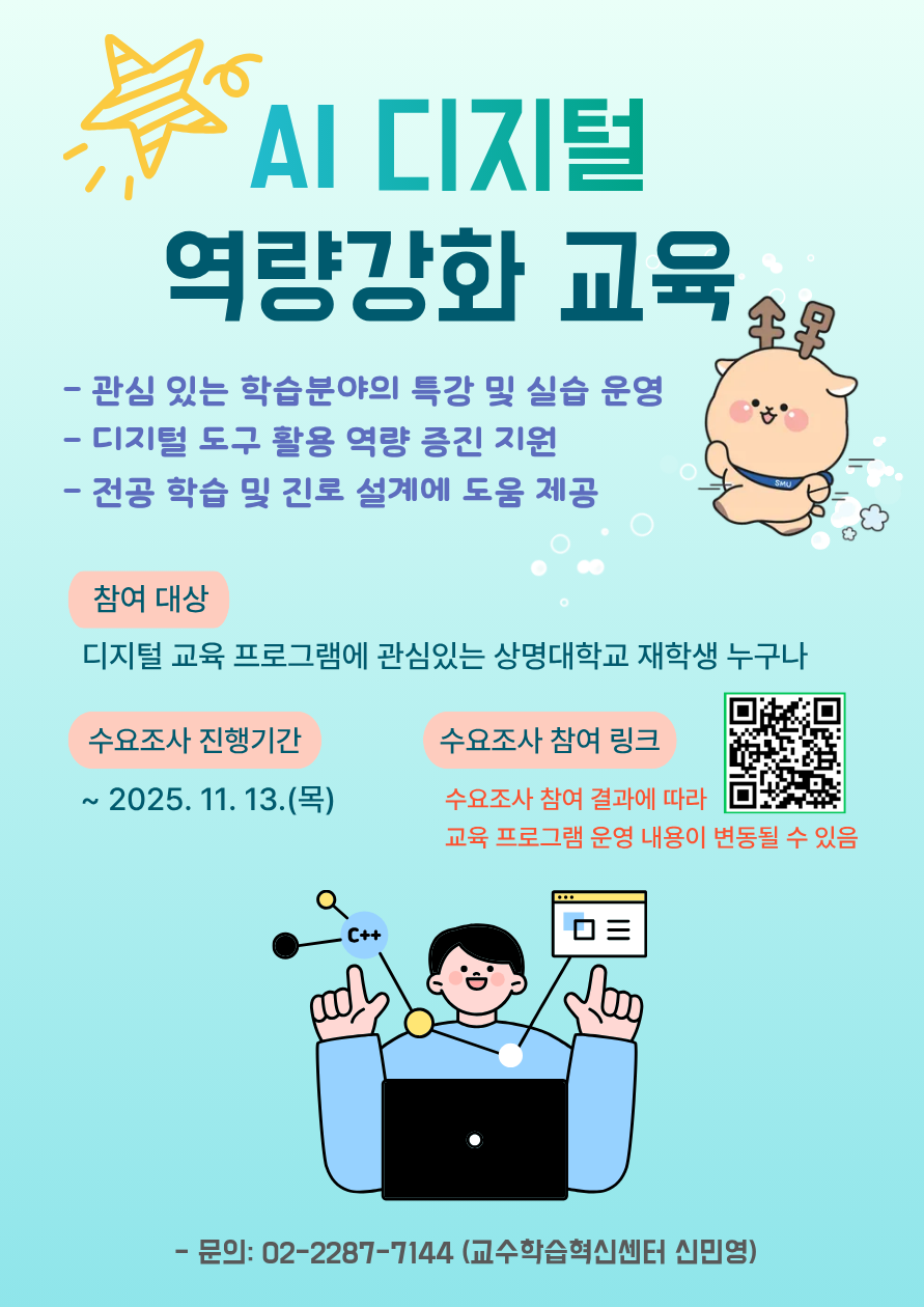 | 서울 [비교과] | [교수학습혁신센터(서울)] 2025학년도 2학기 AI디지털 역량강화 교육 프로그램_수요조사 |