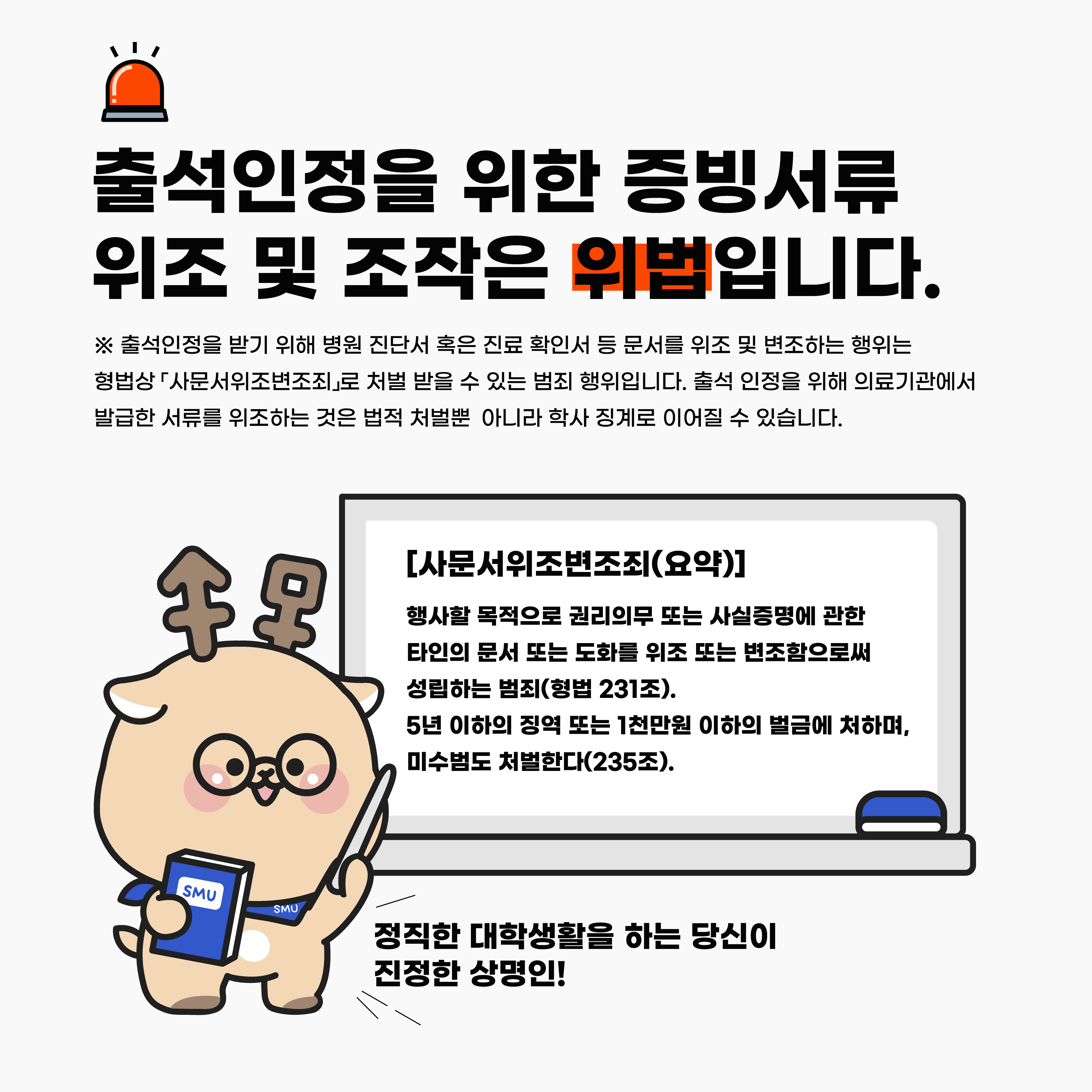| 서울 [학사] | [학사운영팀] 출석인정을 위한 증빙서류 위조 및 조작 관련 안내 |